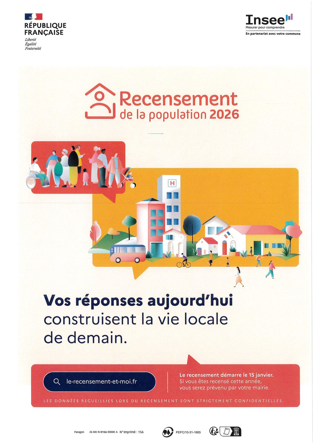 Le recensement de la population aura lieu du 15 janvier 2026 au 14 février 2026.