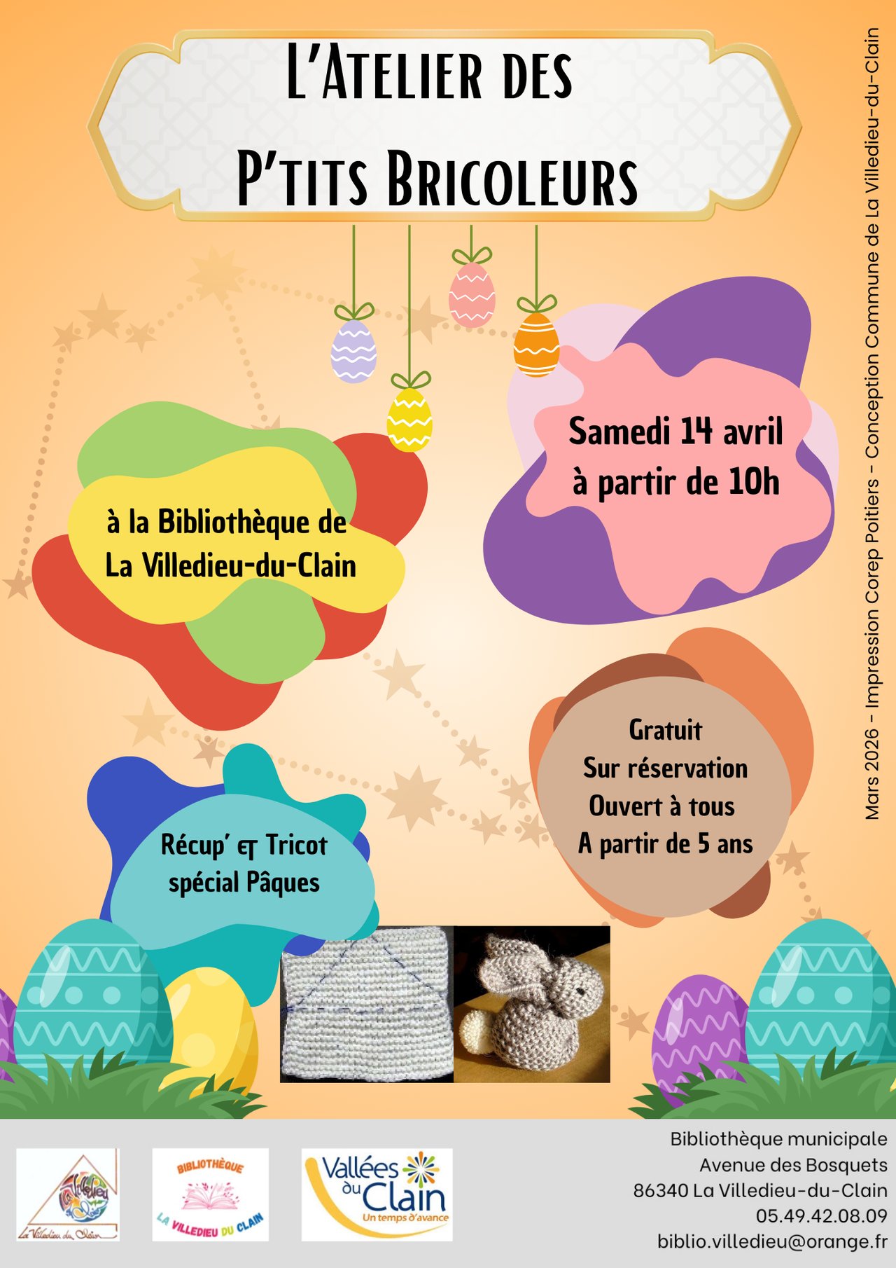 Samedi 4 avril, les bénévoles de la Bibliothèque vous proposent un atelier de loisirs créatifs pour fêter le printemps et Pâques. Venez apprendre à confectionner votre propre lapin en tricot ou d'autres accessoires et décorations vernales.