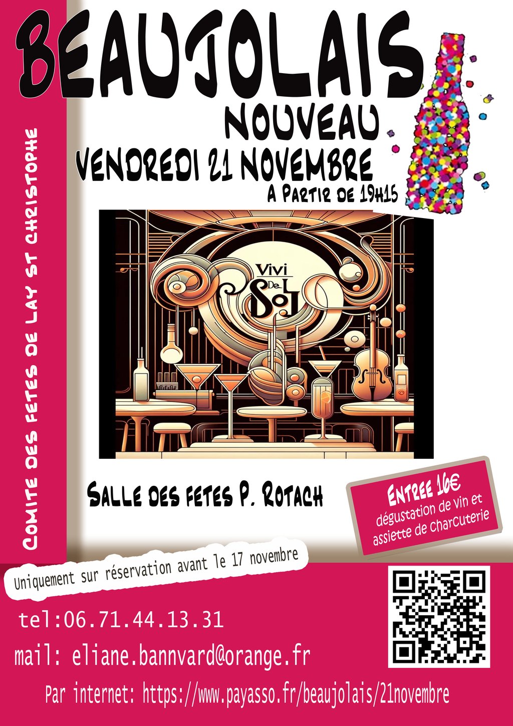 Le Comité des Fêtes de Lay-Saint-Christophe vous invite à participer à sa classique soirée BEAUJOLAIS nouveau !