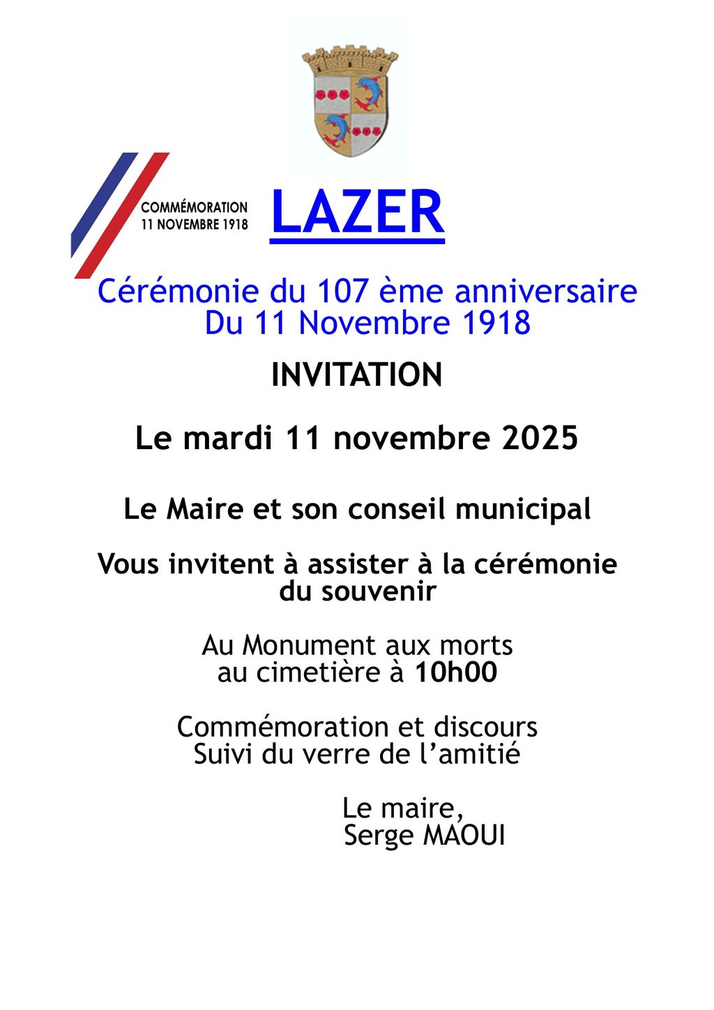 Cérémonie du 107ème anniversaire Du 11 Novembre 1918