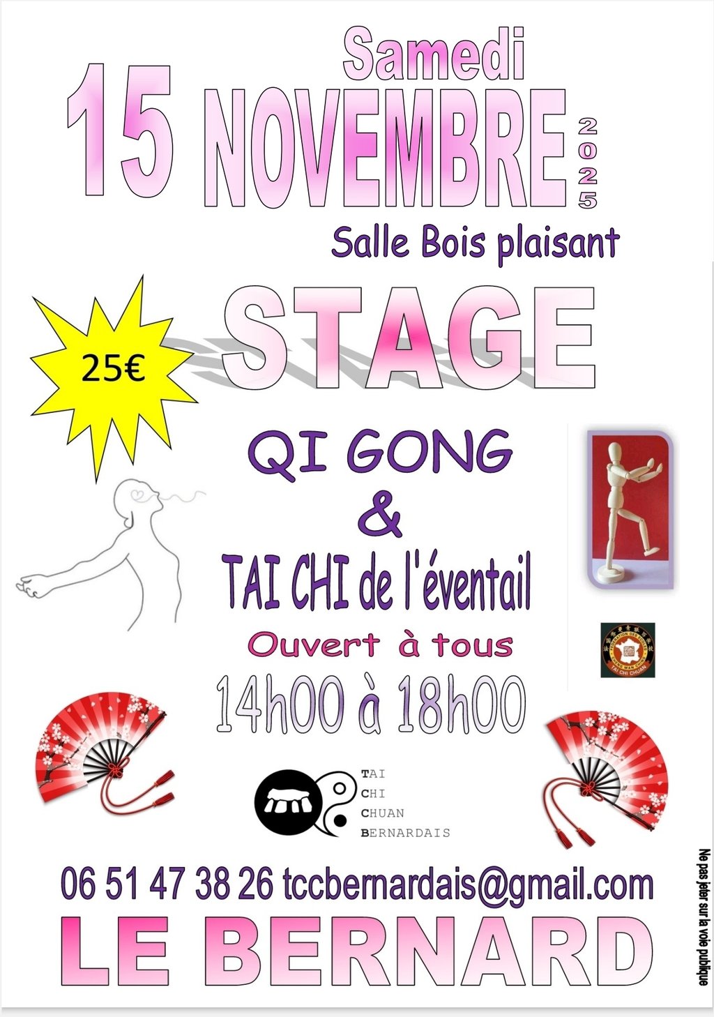 Ouvert à tous débutant comme confirmé, venez découvrir et surtout pratiquer un QI-GONG et une forme le Tai Chi de l'eventail .