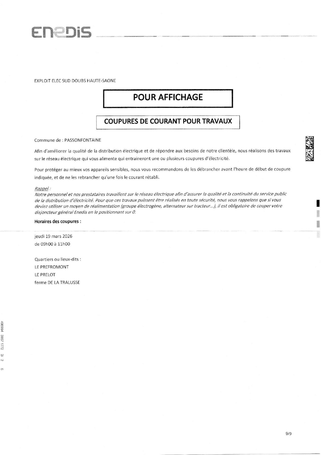 Coupure de courant pour travaux