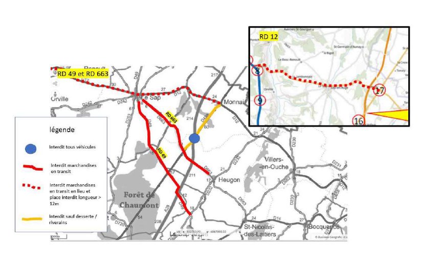 Circulation interdite aux transports de marchandises en transit sur la RD12, PR 23+745 à PR35+1014