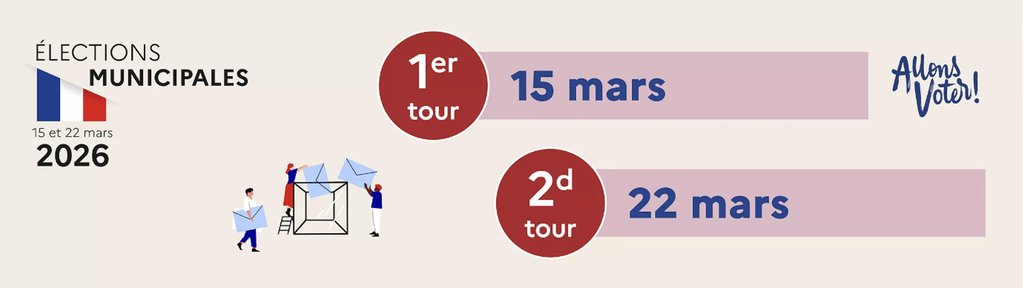 Les élections municipales auront lieu les 15 et 22 mars 2026. Si ce n’est déjà fait, pensez à vous inscrire sur les listes électorales avant la date butoir.