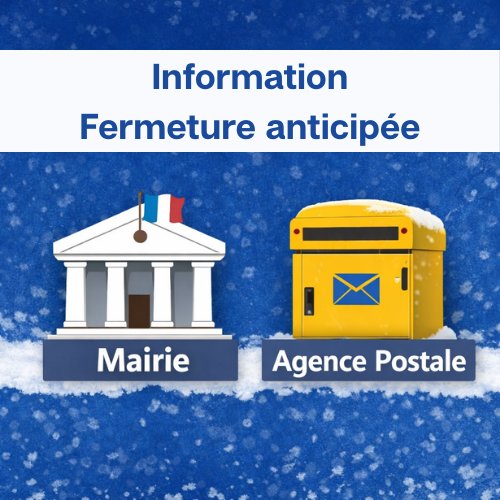 En raison des conditions météorologiques et des chutes de neige, la mairie et l'agence postale fermeront exceptionnellement à 16h30 ce mardi 6 janvier 2026.