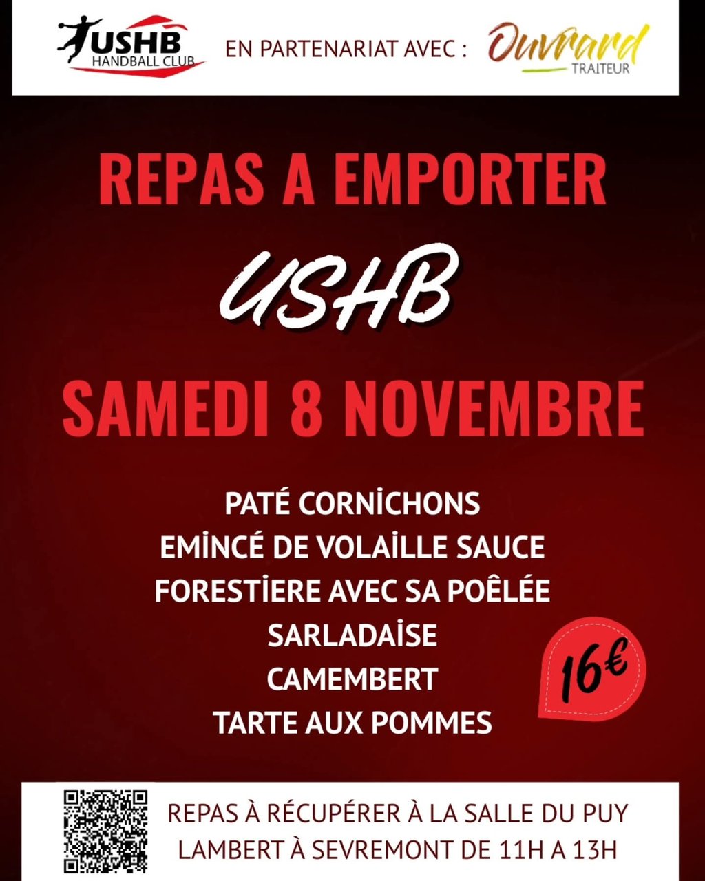 Le club de l’USHB organise un repas à emporter en partenariat avec Ouvrard Traiteur le samedi 8 novembre 2025.
