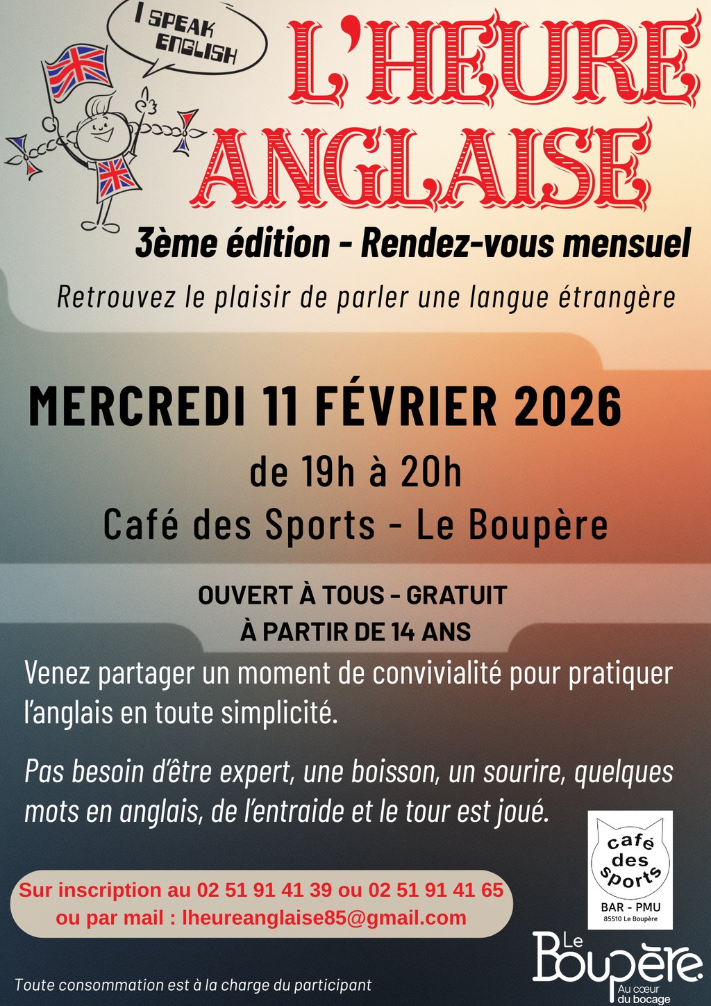 Ne manquez pas "L'Heure Anglaise", un rendez-vous mensuel pour retrouver le plaisir de parler une langue étrangère en toute simplicité.