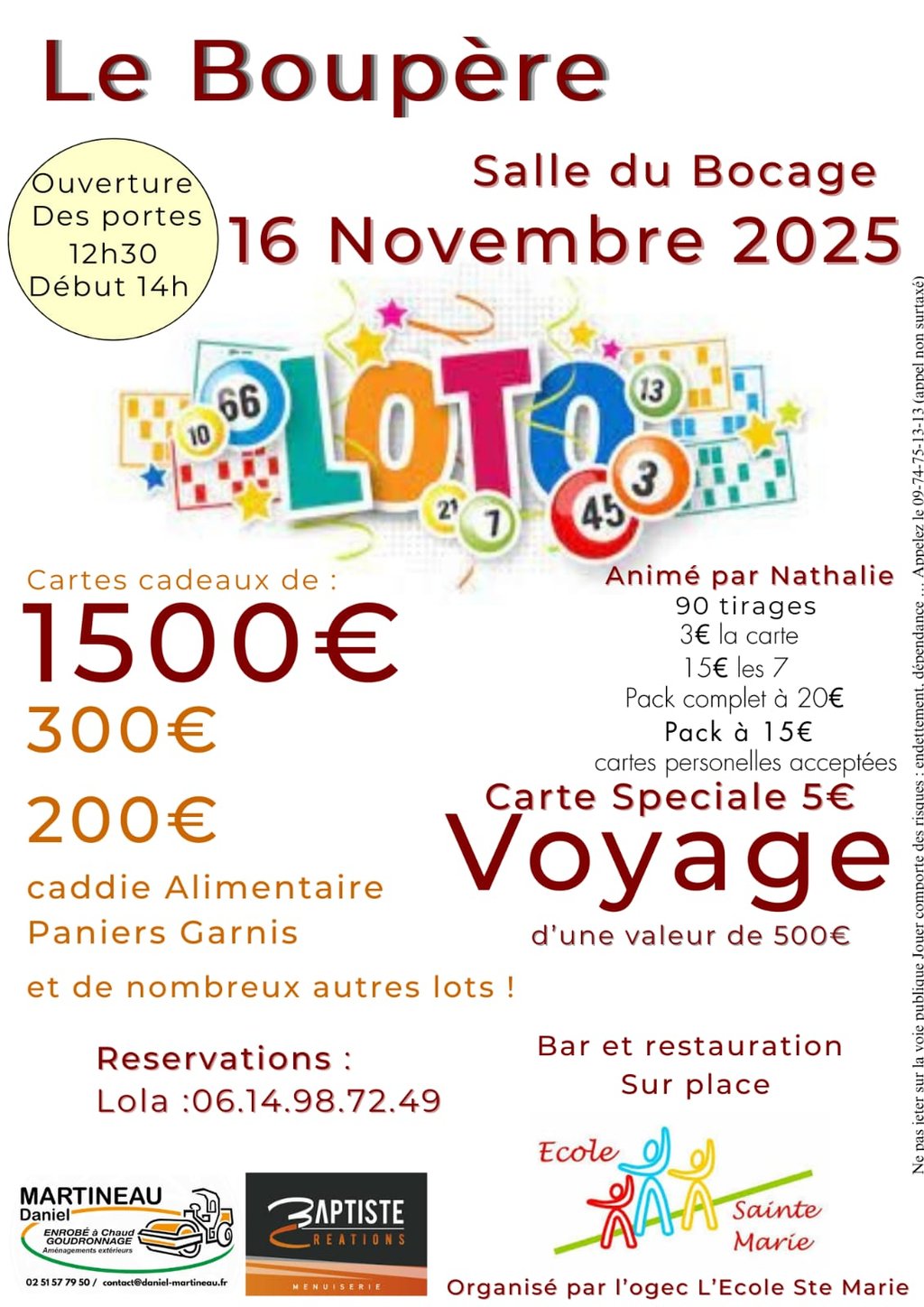 Petits et grands pourront s’amuser grâce au loto organisé par l’école Sainte-Marie.