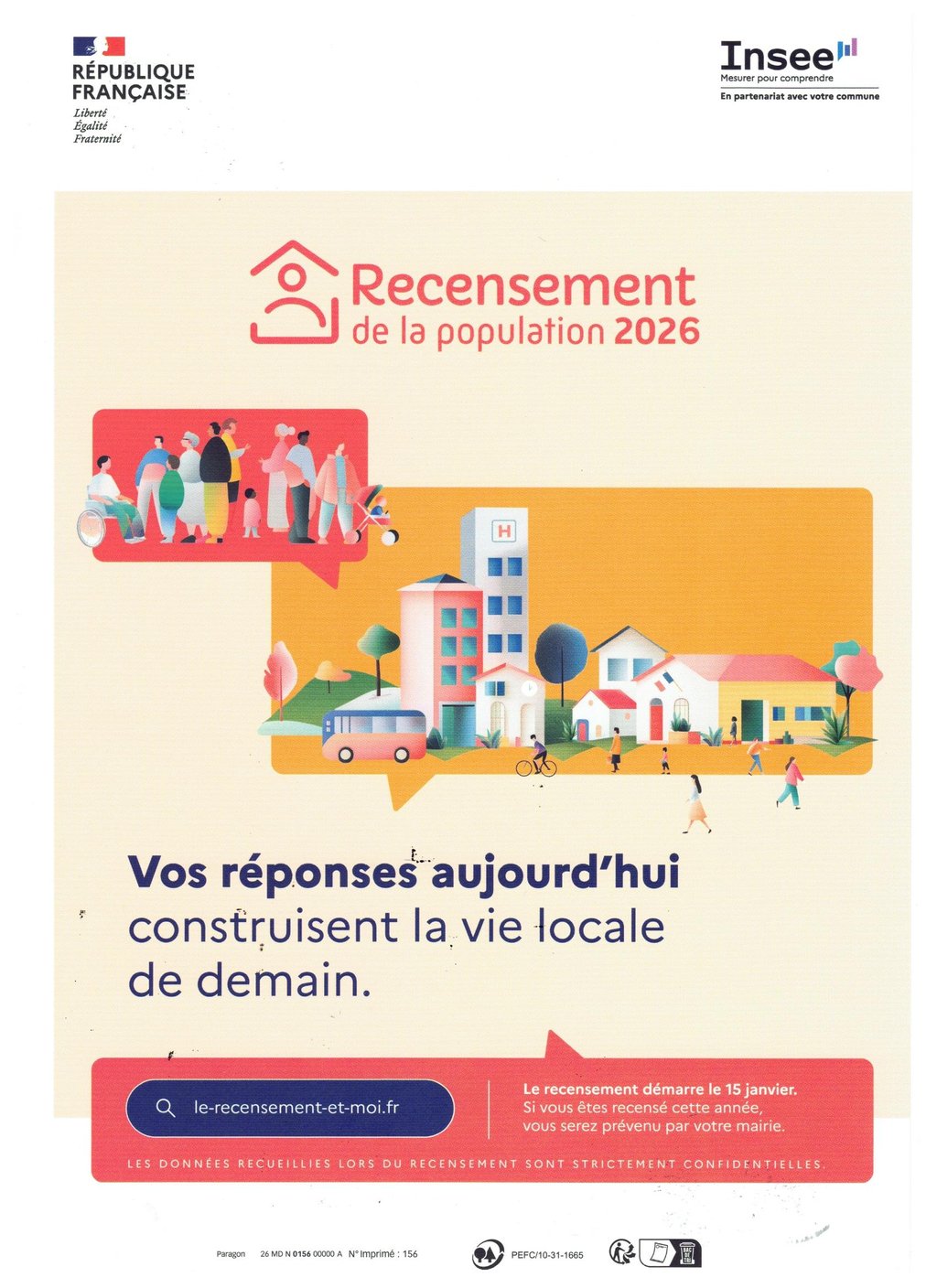 Notre agent recenseur, Madame Fabienne GUTH passera chez tous les administrés de Neauphe sur Dive pendant la période de recensement, du 15/01/2026 au 14/02/2026. Merci de lui réserver un bon accueil.