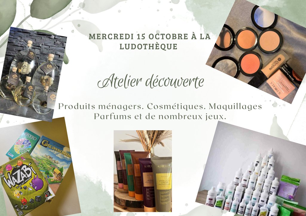 Atelier découverte: cosmétiques, maquillages, produits d'entretien, parfums, et de nombreux jeux.