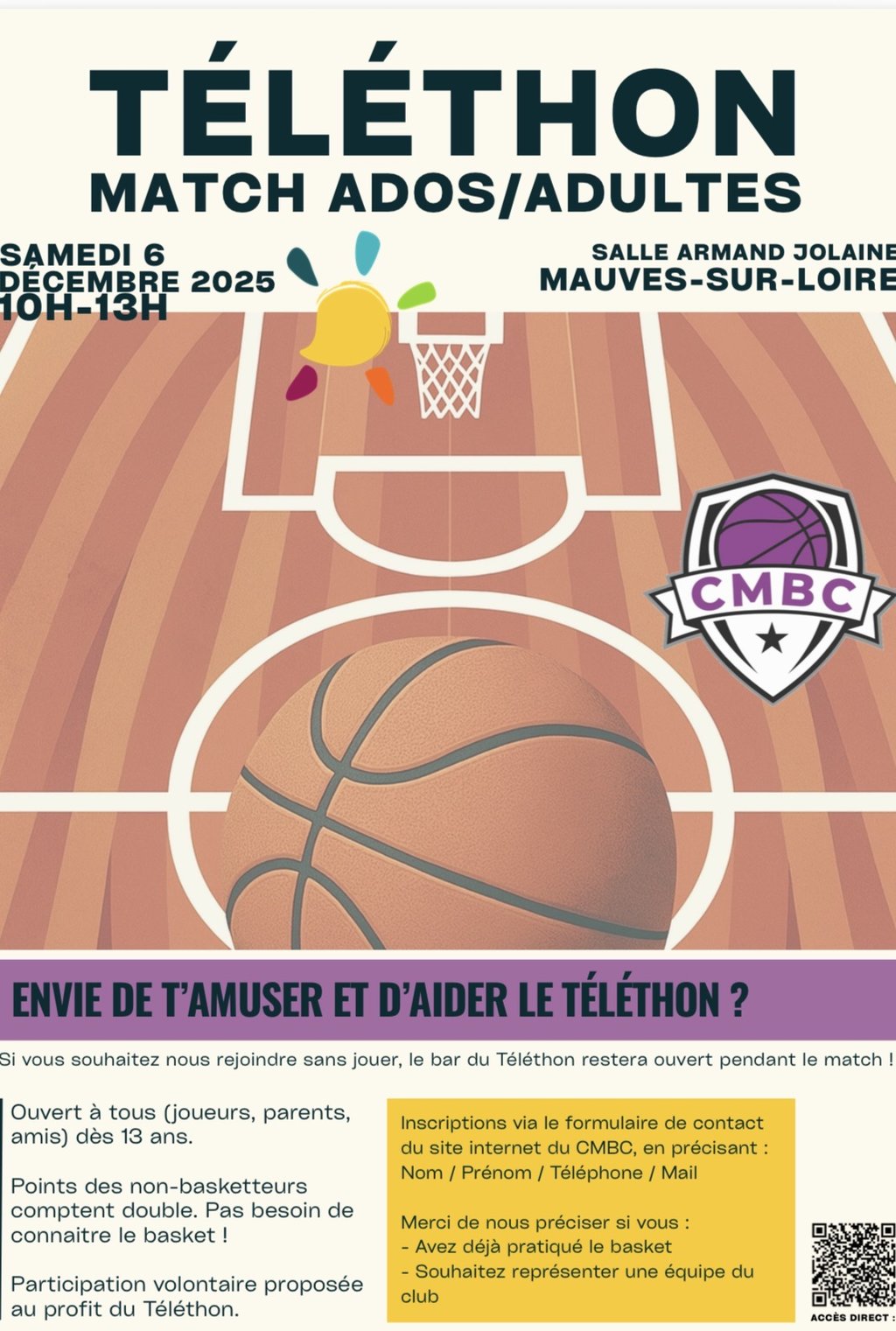 Basketteurs ou non, venez jouer au basket et aider le téléthon le 6 décembre entre 10:00 et 13:00. Les points des non-basketteurs comptent double 😉.