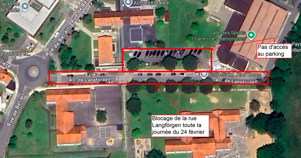 En raison du grutage de la chaufferie biomasse qui alimentera l'école élémentaire publique rénovée, l'allée de Langförden sera fermée à la circulation de 7 h à 18 h le mardi 24 février et le parking du Pôle Enfance ne sera également pas accessible ce jour-là.