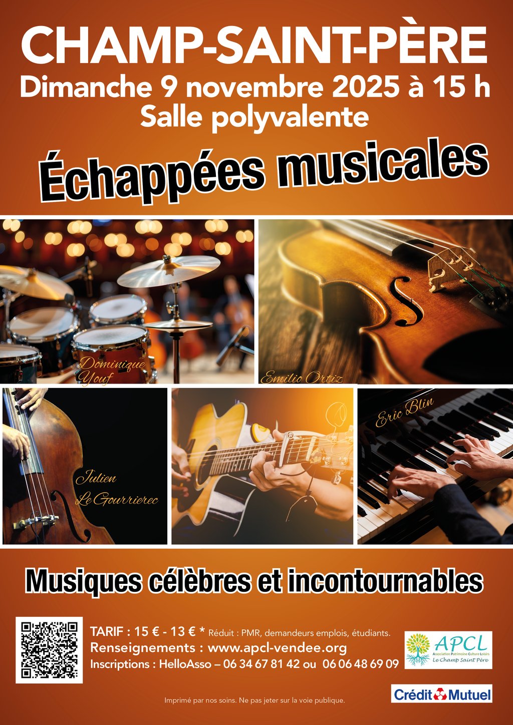 Musiques célèbres et incontournables le dimanche 09 novembre 2025 à 15h00 à la salle polyvalente.