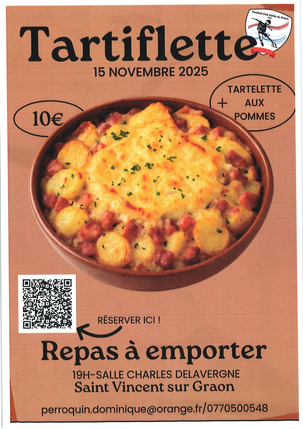 Repas à emporter le 15 novembre 2025: Tartiflette