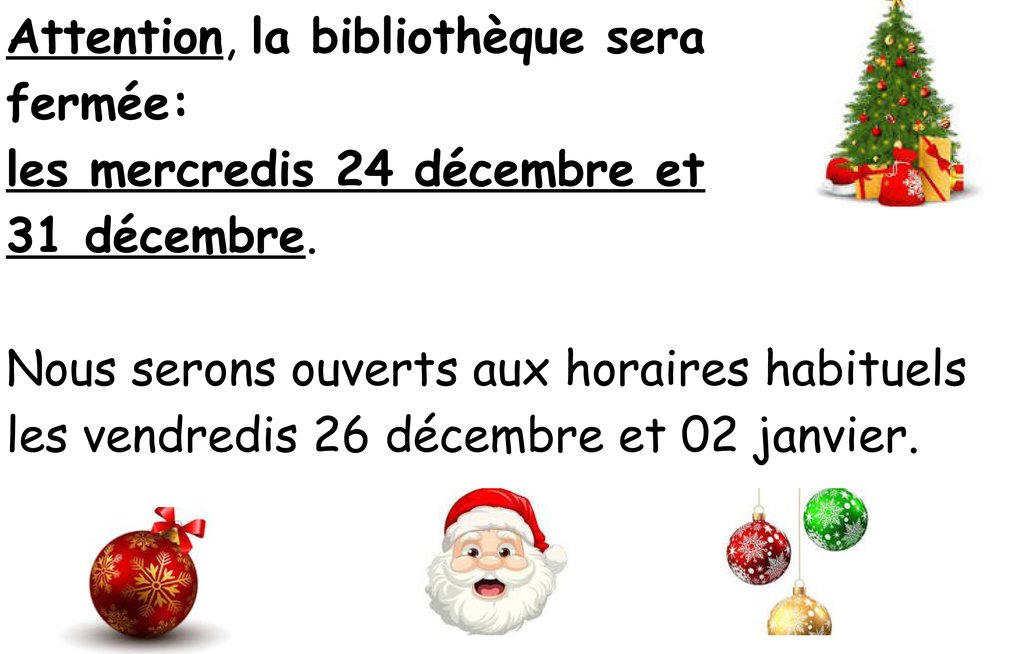 Fermeture de la bibliothèque Noël 2025.