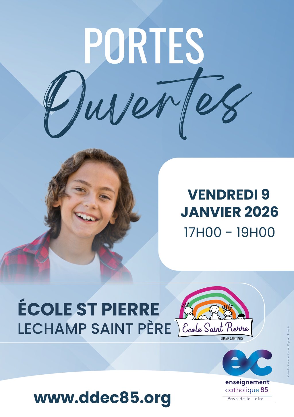 Portes ouvertes le vendredi 09 janvier 2026 de 17h00 à 19h00 à l'école Saint Pierre de Champ-saint-Père