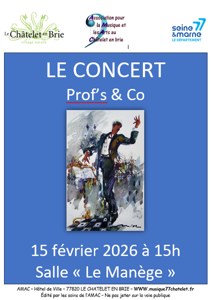 Profitez du concert proposé par les professeurs de l'école de musique AMAC du Châtelet-en-Brie, accompagnés de leurs ensembles. Tous types de musiques seront abordés durant cet évènement.