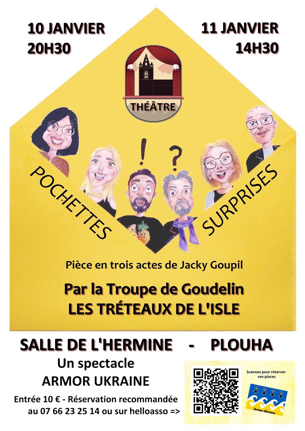 Les samedi 10 et dimanche 11 janvier 2026, l'association Armor Ukraine organise un week-end théâtre avec la troupe Les Tréteaux de L'Isle !