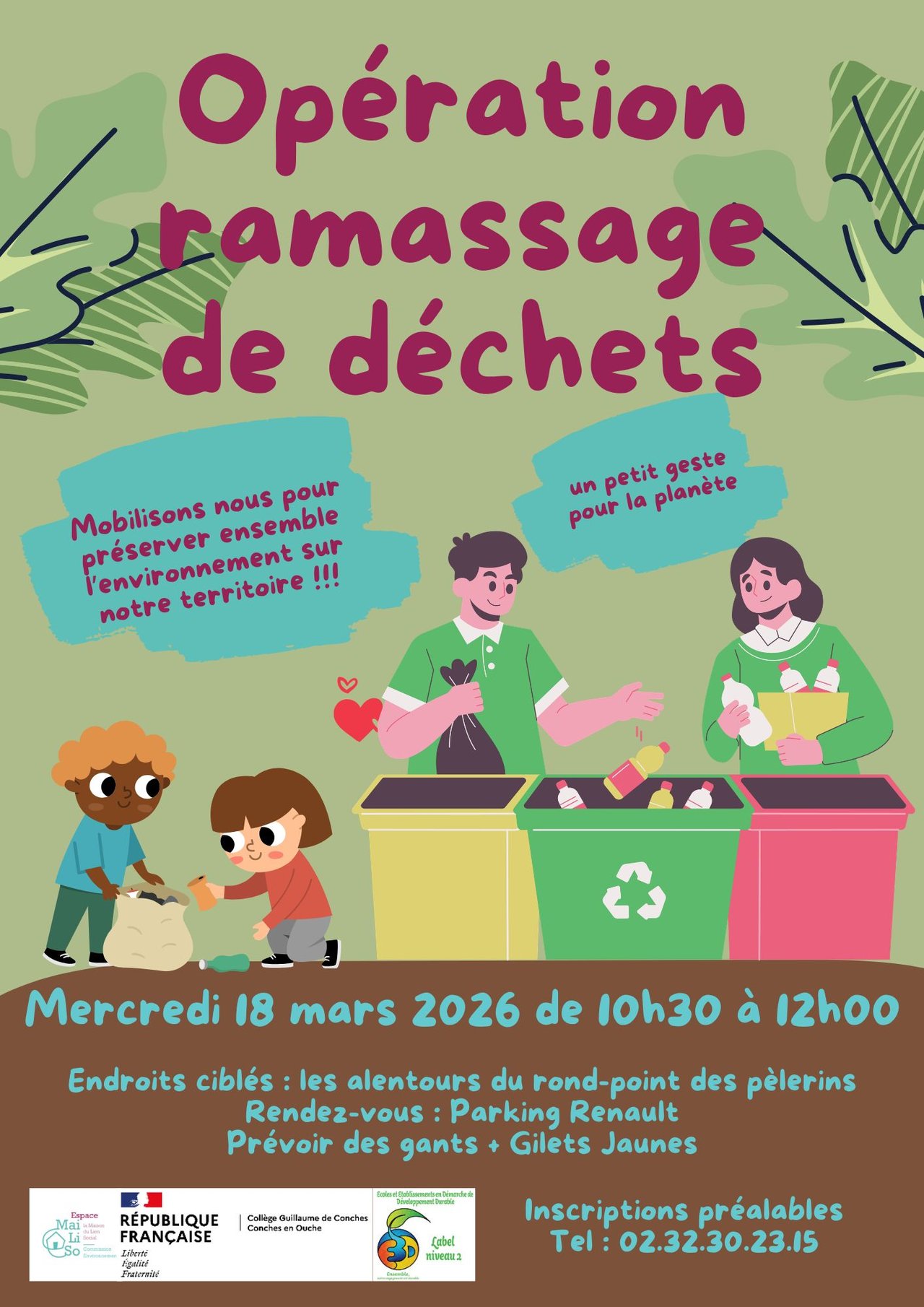 OPERATION RAMASSAGE DE DECHETS MERCREDI 18 MARS 2026 COLLEGE ESPACE MAILISO