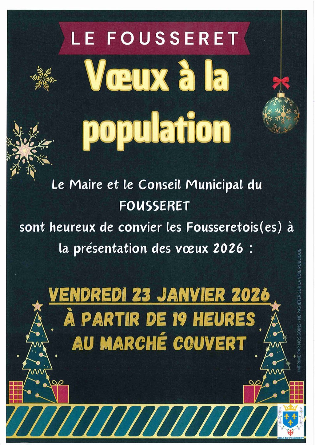 Monsieur le Maire et son Conseil Municipal ont le plaisir d’inviter à la PRÉSENTATION DES VŒUX 2026 l’ensemble des habitants de la commune, qui aura lieu le :