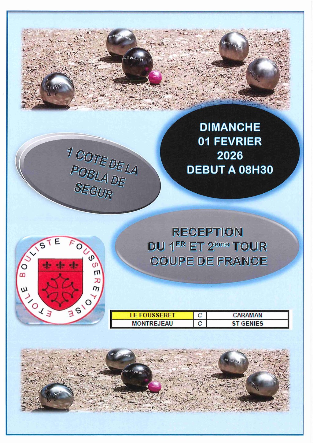 Réception des 1er et 2ème tour de la Coupe de France 🇫🇷 au boulodrome municipal dès 8 h 30 à LE FOUSSERET