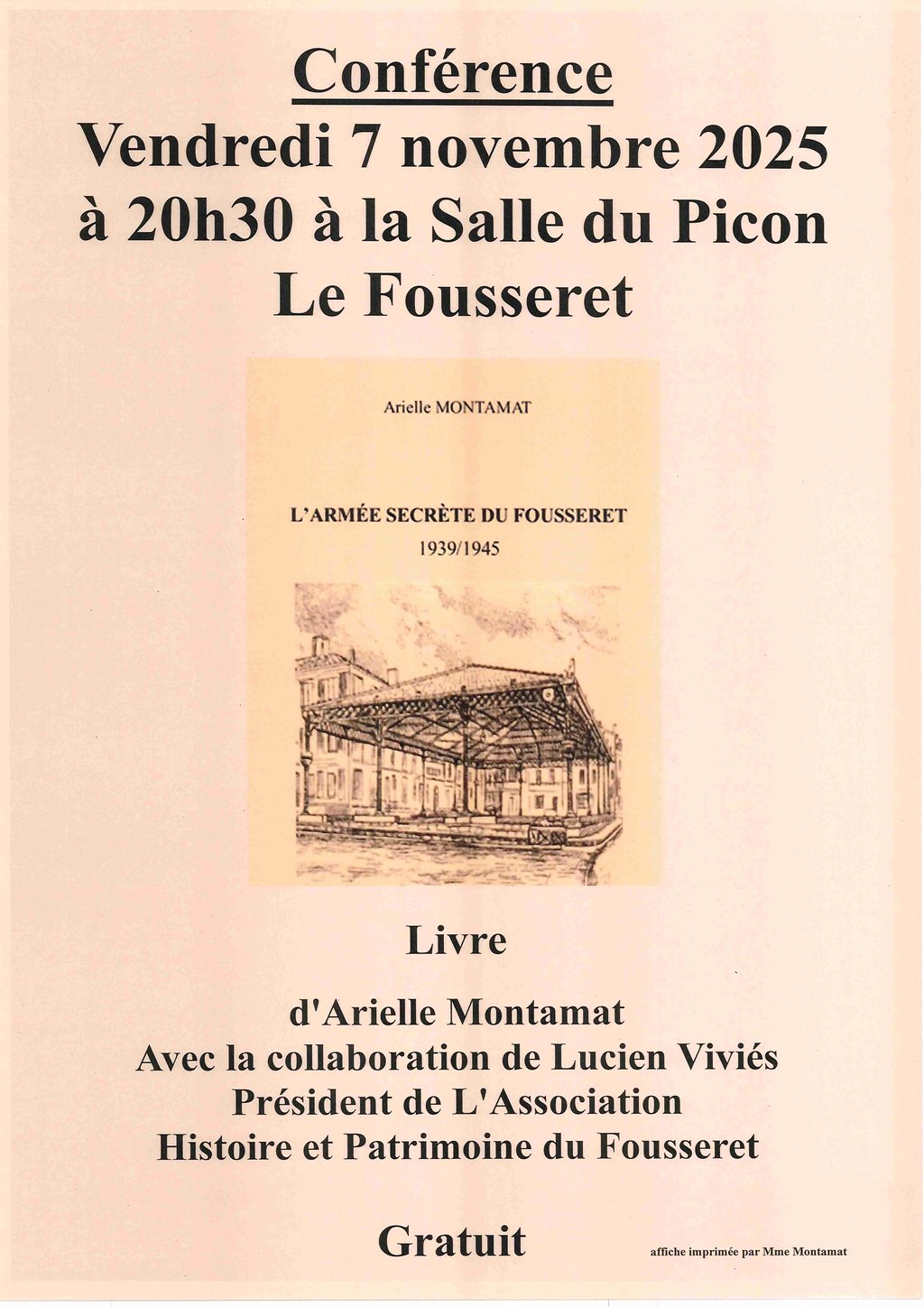 Conférence du livre "L'armée secrète du Fousseret" vendredi 7 novembre à 20h30 à la salle du Picon