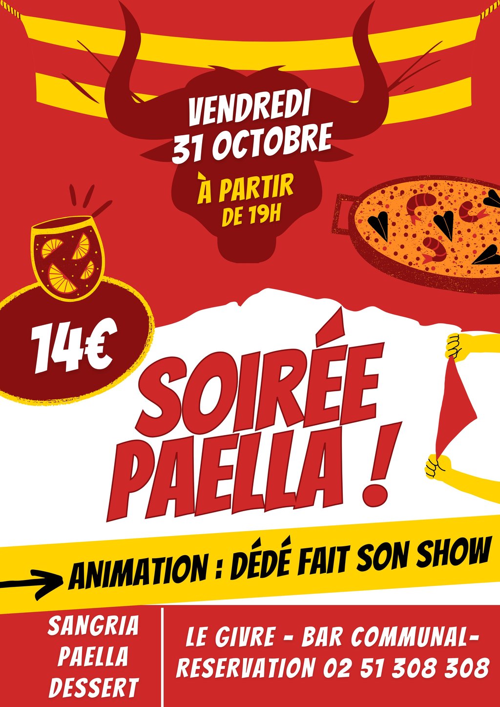 Le 31 octobre, une soirée Paella est organisée à la salle du bar communal .