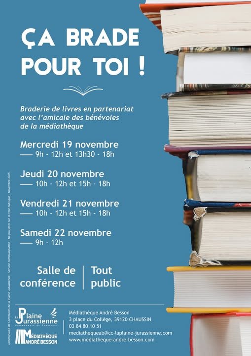 La Médiathèque André Besson et l'amicale des bénévoles de la médiathèque vous invitent à leur braderie de livres :