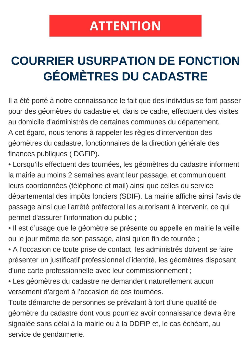 USURPATION DE FONCTION DE GEOMETRE DU CADASTRE