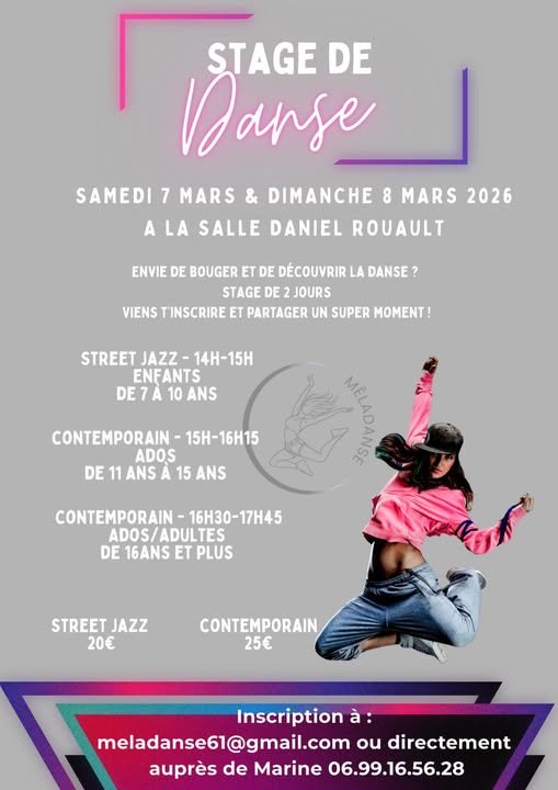 Inscriptions à : meladanse61@gmail.com ou auprès de Marine 06 99 16 28