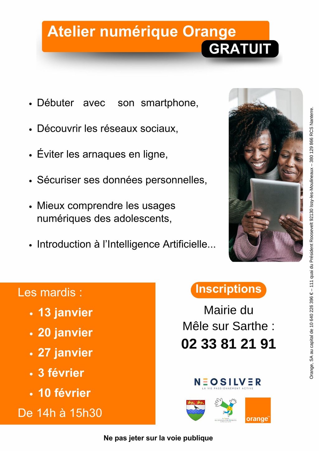 ATELIER NUMERIQUE ORANGE GRATUIT POUR LES 55 ANS ET +