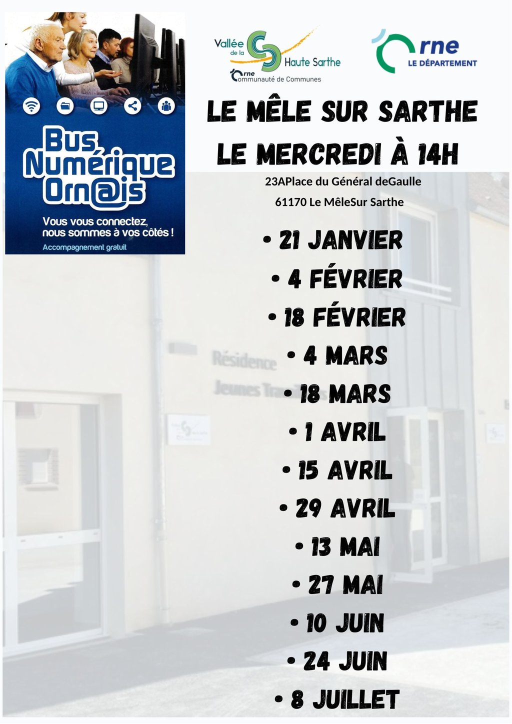 Le Bus Numérique sera présent au Mêle sur Sarthe le 4 février à partir de 14h