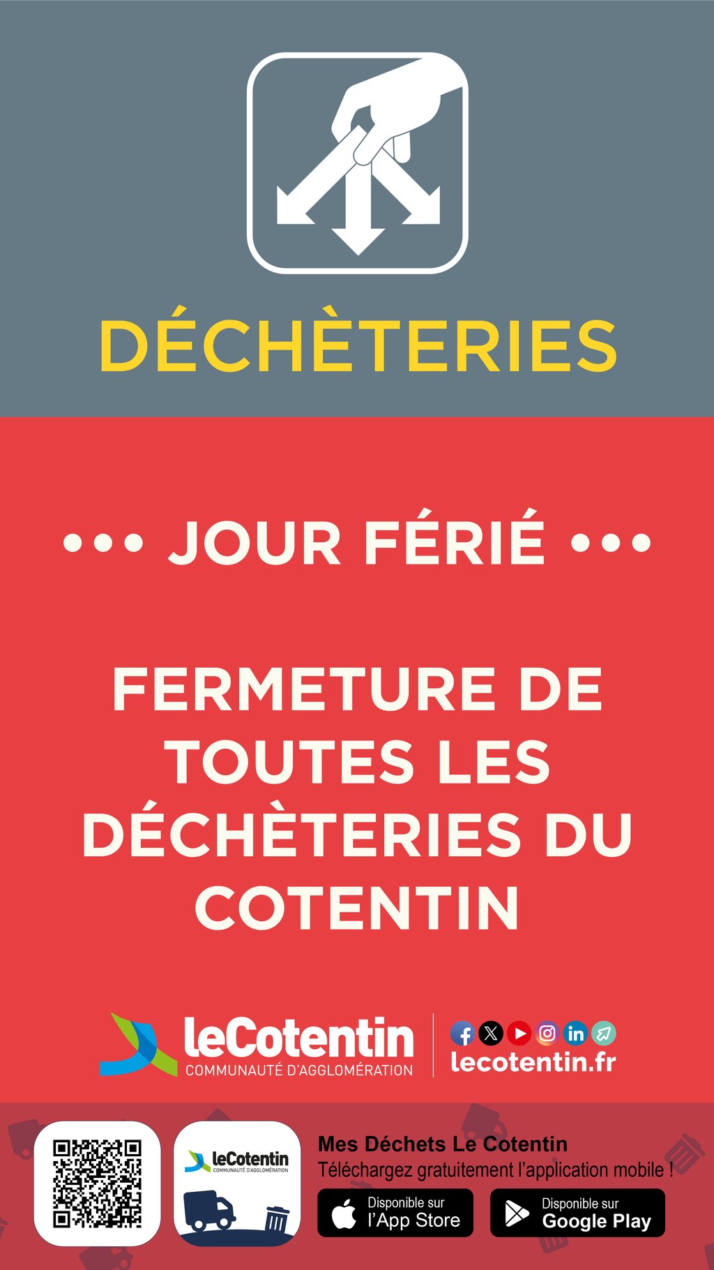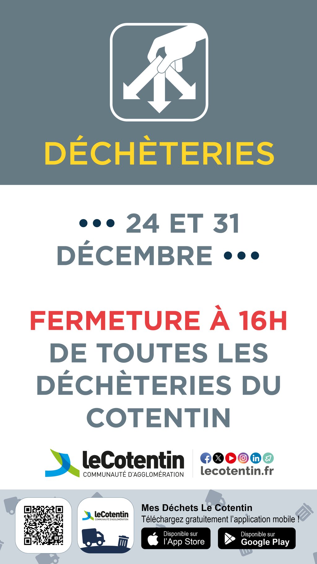 Les déchèteries habituellement ouvertes le mercredi fermeront exceptionnellement à 16 h les 24 et 31 décembre.