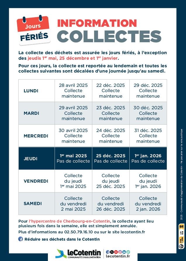 La collecte sur la commune sera assurée normalement les 23 et 30 décembre.