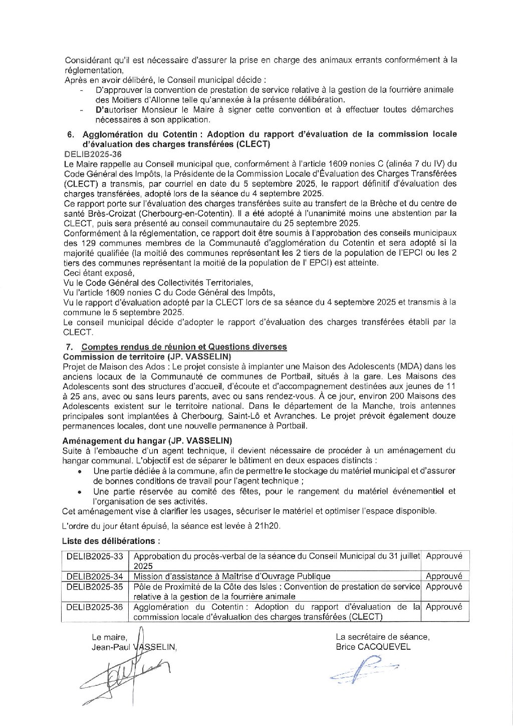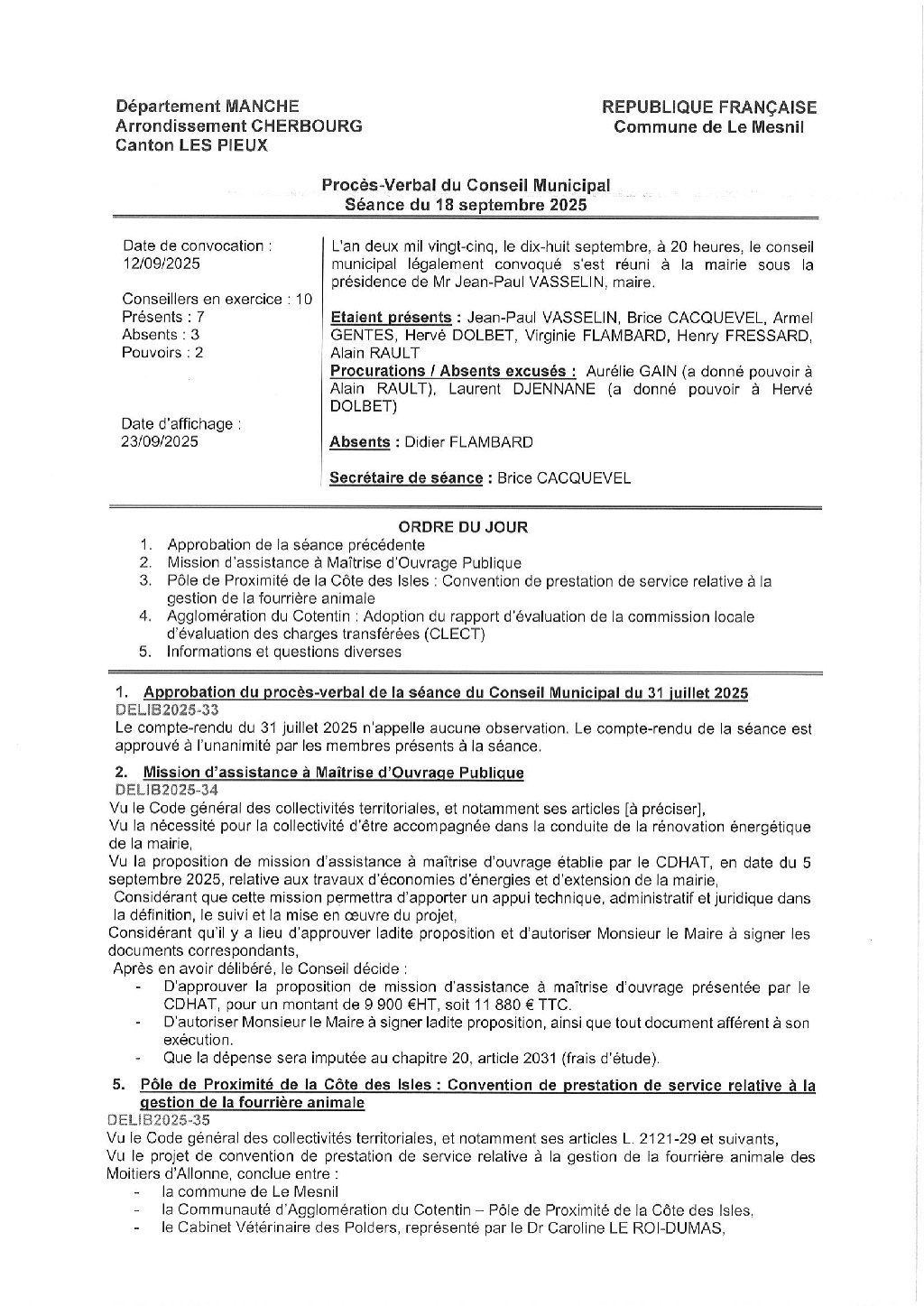 Conseil Municipal : Procès-verbal du 18 septembre 2025