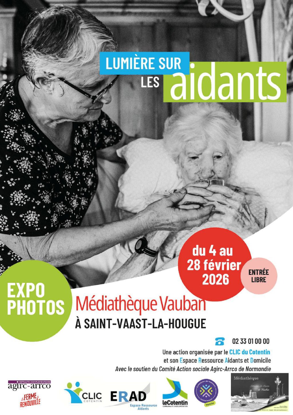 Jusqu’au samedi 28 février, l’exposition « lumière sur les aidants » est installée à la médiathèque de Saint-Vaast-la-Hougue Pour tout public, gratuit - Aux horaires de la médiathèque