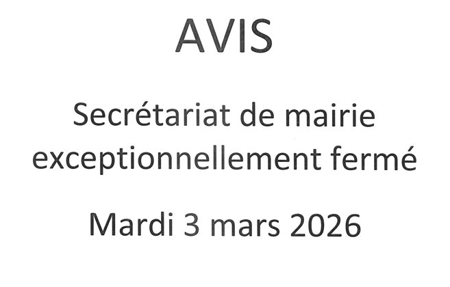 Le secrétariat de mairie sera fermé le mardi 3 mars 2026.