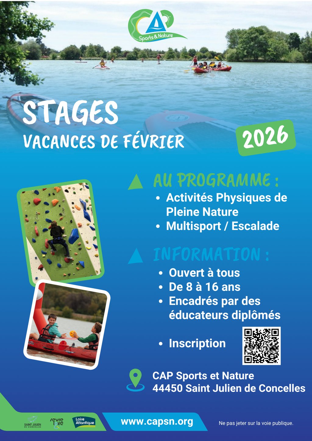 CAP Sports & Nature organise des stages qui se tiendront durant les vacances de février 2026.