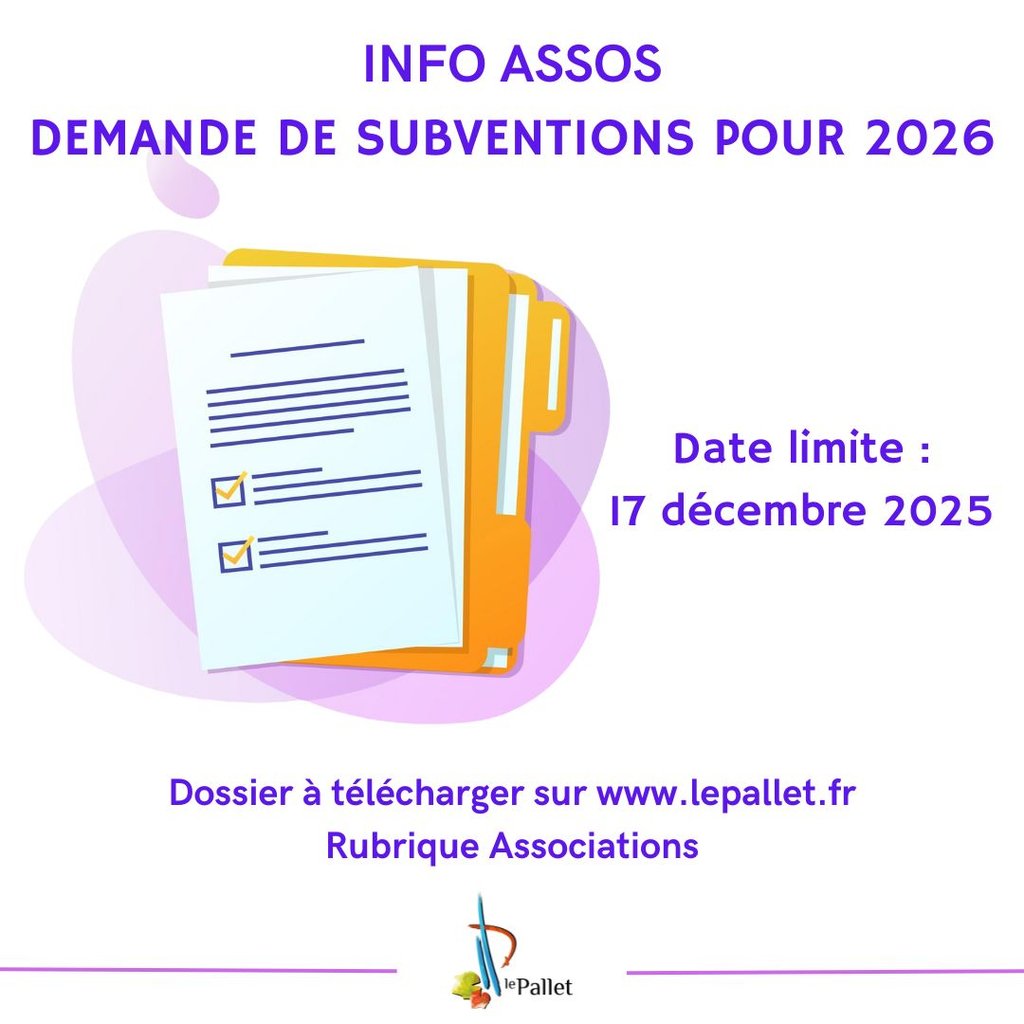Les demandes de subventions pour l'année prochaine sont à déposer avant le 17 décembre 2025.