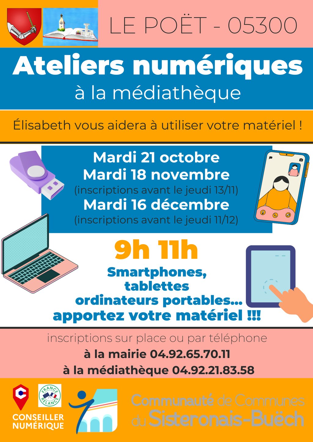 Ateliers numériques animés par Elisabeth, conseillère numérique à la CCSB.