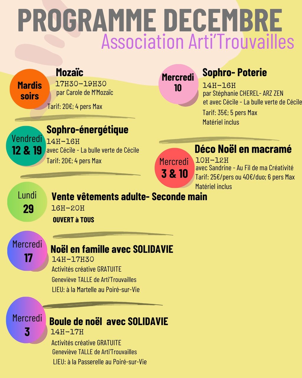 Retrouvez le programme de l'association Arti'trouvailles pour le mois de décembre.