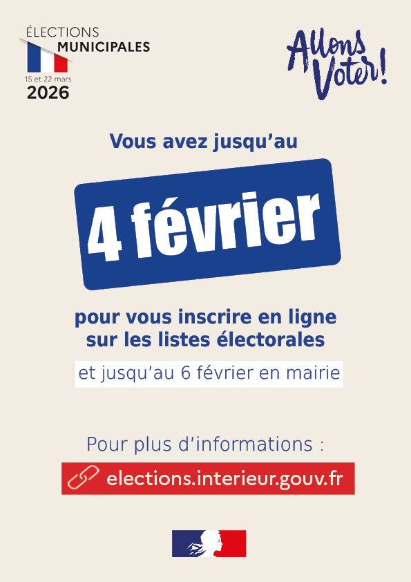 - En mairie, par formulaire papier : jusqu’au vendredi 6 février 2026