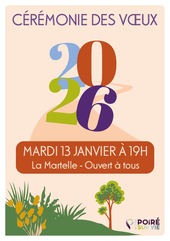 Sabine ROIRAND, maire du Poiré-sur-Vie, et les membres du Conseil municipal ont le plaisir de vous inviter à la cérémonie des vœux 2026.