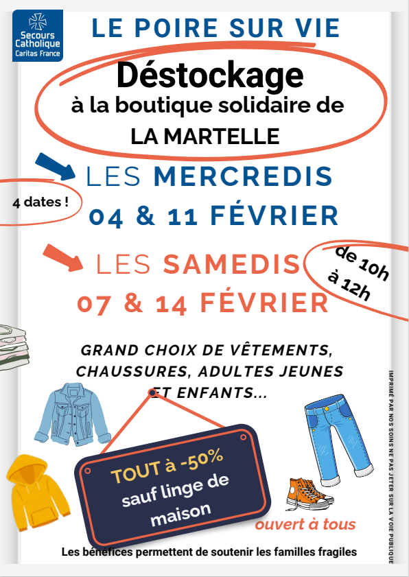 Vente solidaire de vêtements - Déstockage d'hiver