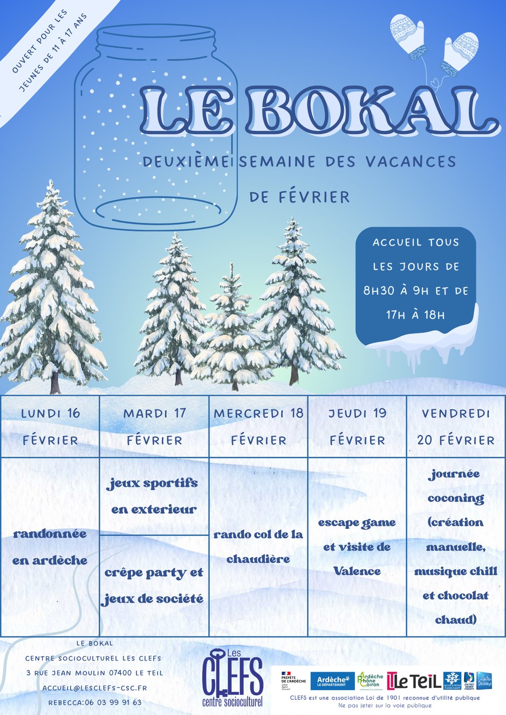 Accueil de loisirs à la journée de 8h30 à 18h, pour les jeunes de 11 à 17 ans pendant la deuxième semaine des vacances de Février.