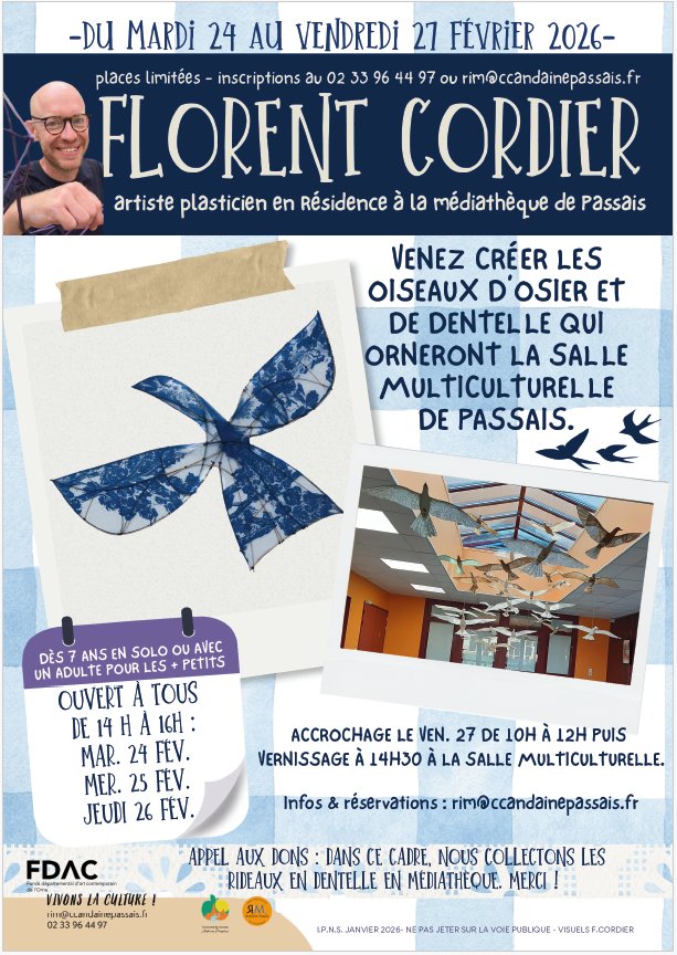 Atelier de Florent CORDIER artiste plasticien du Mardi 24 au Jeudi 27 FÉVRIER 2026.