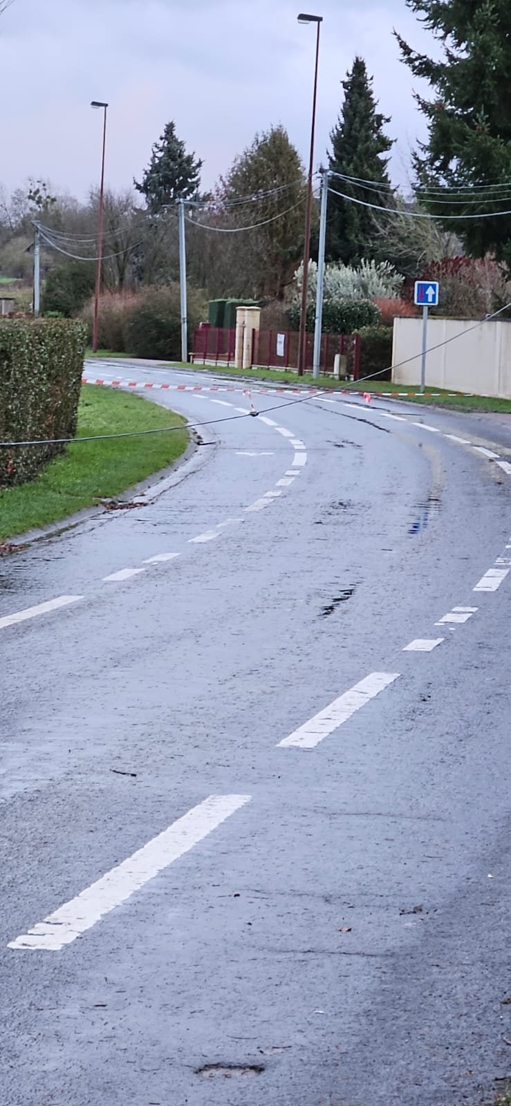 Suite aux intempéries, un câble aérien est actuellement au sol rue de l’Oison.