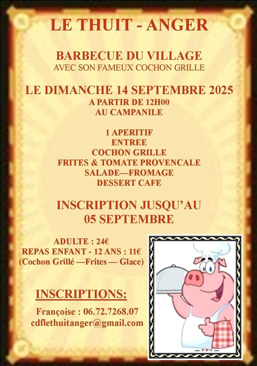 Le traditionnel barbecue du village revient le dimanche 14 septembre 2025 à partir de 12h, au Campanile, avec son célèbre cochon grillé.