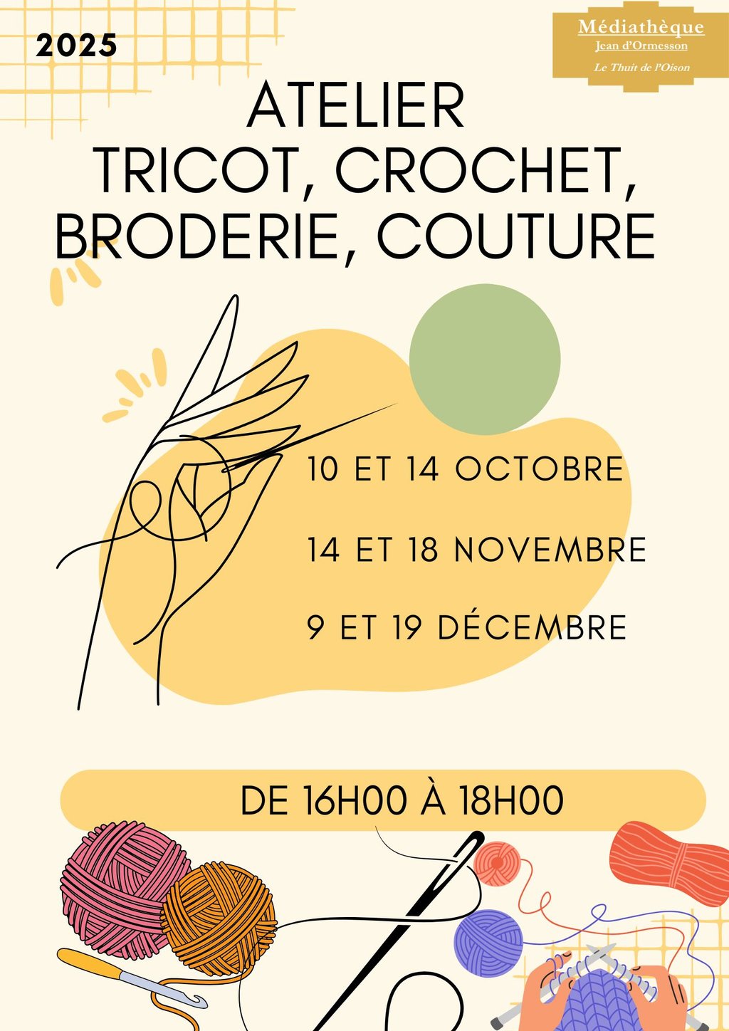Les séances seront co-animées avec vous, chers usagers, le but étant de partager votre savoir-faire avec les participants qui ne savent pas encore manier les aiguilles. Le matériel de base (aiguilles, pelotes, tissus, boutons…) sera disponible à la médiathèque, néanmoins si vous avez vos propres projets, n’hésitez pas à venir avec.