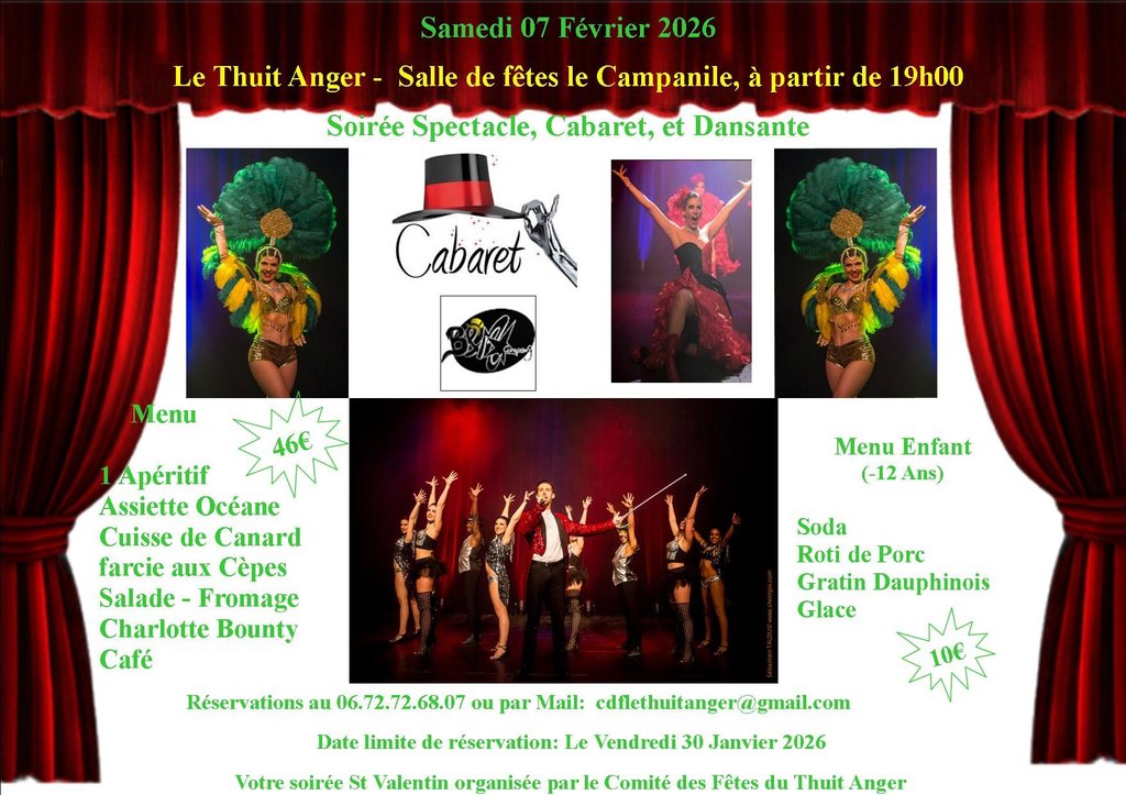 Le Comité des Fêtes du Thuit-Anger vous invite à une soirée exceptionnelle placée sous le signe du spectacle, du cabaret et de la convivialité💃🕺